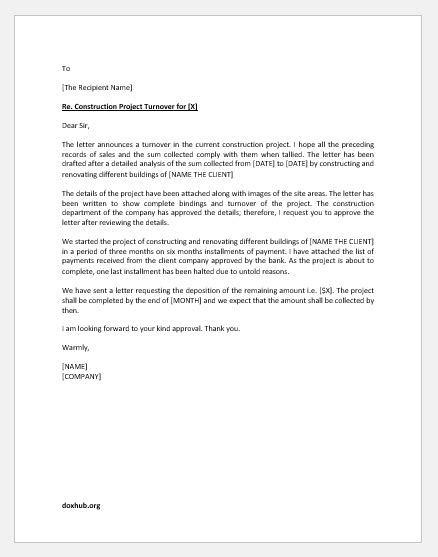Download SAMPLE LETTER TURNOVER CONSTRUCTION PROJECT Paperback Open Library